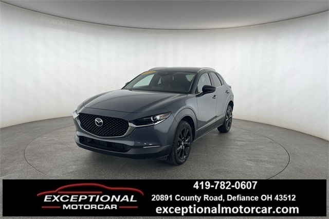 CARFAX One-Owner. Clean CARFAX. Polymetal Gray Metallic 2023 Mazda CX-30 2.5 S Carbon Edition AWD 6-Speed Automatic SKYACTIV 2.5L 4-Cylinder DOHC 16V CX-30 2.5 S Carbon Edition, 4D Sport Utility, SKYACTIV 2.5L 4-Cylinder DOHC 16V, 6-Speed Automatic, AWD, 4.095 Axle Ratio, 8 Speakers, Air Conditioning, AM/FM radio, AppLink/Apple CarPlay and Android Auto, Automatic temperature control, Front dual zone A/C, Heated Front Seats, MAZDA CONNECT Infotainment System, Memory seat, Navigation System, Power driver seat, Power moonroof, Radio data system, Radio: AM/FM/HD Audio System, Wheels: 18 x 7J Aluminum Alloy.26/33 City/Highway MPGDrive on out and see us today at 20891 County Road 424 Defiance, OH 43512 Located right off of US 24 Exit 22. Check us out at ** exceptionalmotorcar.com ** Proudly serving: Paulding, Defiance, Fort Wayne, Van Wert, Findlay, Lima, Toledo, Delphos, Detroit, Indianapolis, South Bend, Elkhart, and all of greater Ohio, Michigan and Indiana.